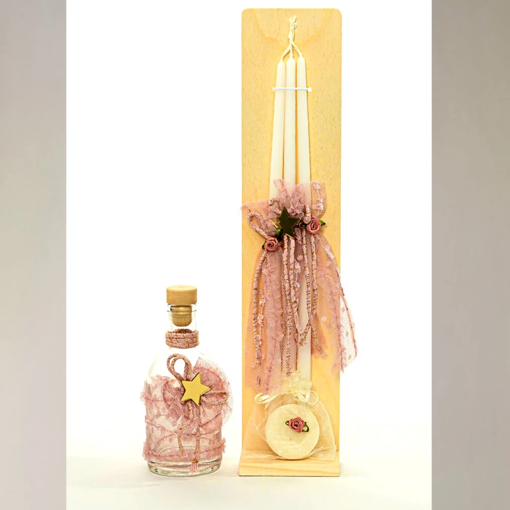 Σετ λαδικού για κορίτσι Περιλαμβάνει μπουκαλάκι για το λάδι, σαπούνι, πετσέτα για τον ιερέα, τρία κεράκια για την κολυμπήθρα